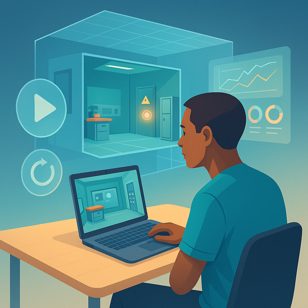 We help you transform critical trainings (onboarding, safety, equipment, customer dialogs) into compact 3D practice rooms. One room per skill, short scenarios, clear feedback, and easy retries. Learners enter via link, train in realistic situations, make safe mistakes, and build confidence.
